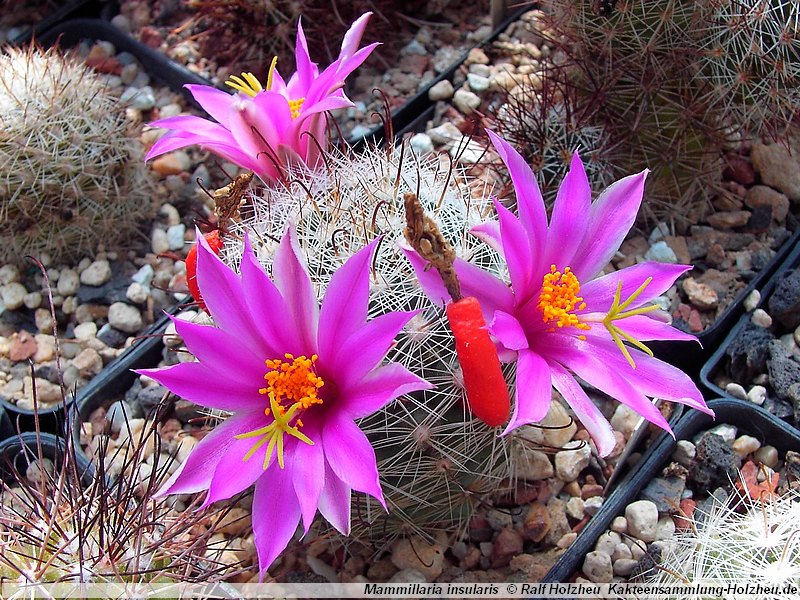 Blüten rings um den Scheitel, aus den Axillen, meist klein, bei hakendornigen, kurzsäuligen Arten aus den Staaten Sonora,