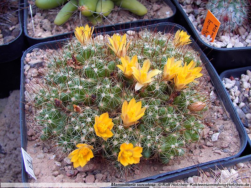 Blüten rings um den Scheitel, aus den Axillen, meist klein, bei hakendornigen, kurzsäuligen Arten aus den Staaten Sonora,
